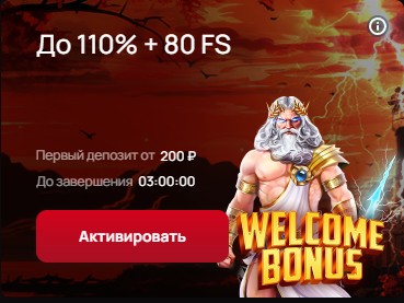 Бонус 110% и 80 Фриспинов к первому депозиту